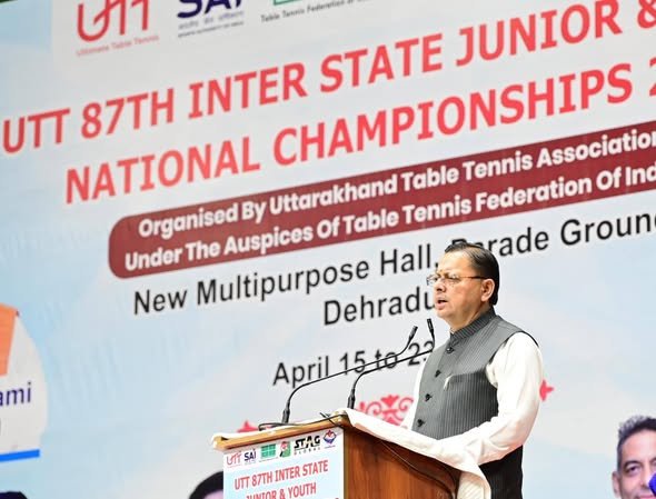 देहरादून। पुष्कर सिंह धामी ने आज परेड ग्राउंड स्थित बहुउद्देशीय क्रीड़ा हॉल में 87वीं इंटर स्टेट जूनियर एवं यूथ नेशनल टेबल टेनिस चैंपियनशिप का शुभारंभ किया। इस अवसर पर मुख्यमंत्री ने स्वयं टेबल टेनिस खेलकर खिलाड़ियों का उत्साहवर्धन भी किया।